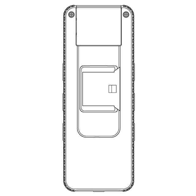 本物品は、例えば、各種の設備や機械の点検作業や検査作業時における動画や音声等を記録できる、携帯が可能な小型の情報記録機である。本物品は、縦長の本体の上部に、カメラ部分を備えている。このカメラ部分は傾動可能で、カメラ部分の角度を調整することができる(参考斜視図、使用状態参考斜視図1・2・3参照)。また、本物品は、縦長の本体の前面部に、録画している映像等を表示する液晶画面を備えている。記録者は、本体の前面部の液晶画面が見えるように本体を手に持ち、カメラ部分を傾動させて本体の裏面側に向ければ(使用状態参考斜視図3参照)、各種の動画の内容を液晶画面により確認しながら、その動画の内容を記録することができる。また、カメラ部分を傾動させて本体の液晶画面側に向けた状態とし(参考斜視図参照)、記録者は本体の裏面側が見えるように本体を手に持った場合、或いは、付属のクリップマウント等を用いて本体を記録者の作業服に取り付けた場合、動画を撮られる作業者側が、各種の動画の内容を液晶画面により確認することができる。この他、カメラ部分を傾動させて本体の上方に向けた状態とし(使用状態参考斜視図2参照)、このカメラ部分が記録者の前方を向くように、本体をヘルメットに取り付けた場合には、記録者の前方の動画を記録することができる。このように、本体のカメラ部分の角度を調整することができるので(使用状態参考斜視図1・2・3参照)、現場に応じた様々な動画を、簡単に記録することができる。