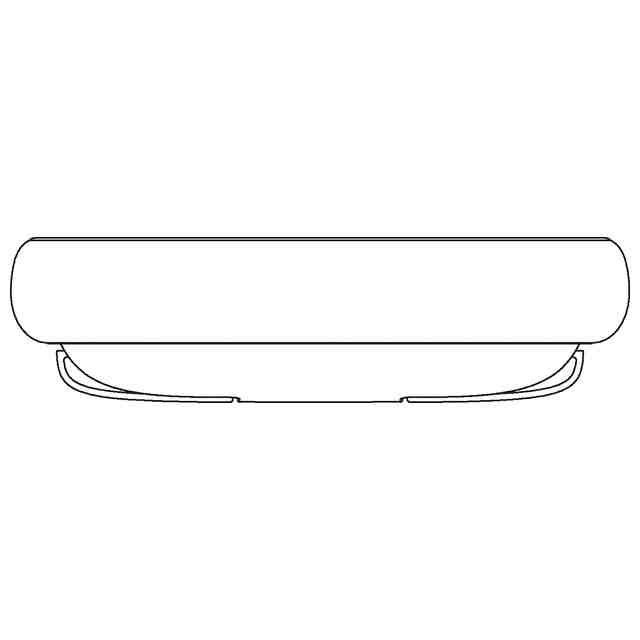 左側面図は右側面図と対称に表れるため省略する。各図に表された細線は、いずれも平面と曲面及び曲面同士の境界を示し、立体表面の形状を特定するためのものである。