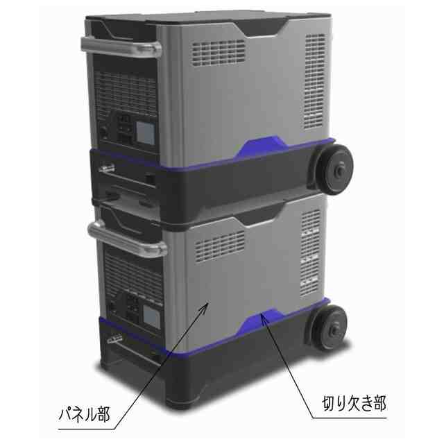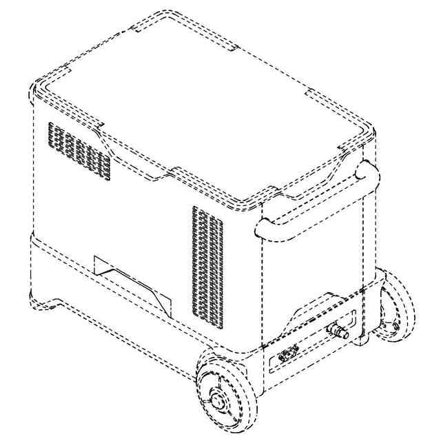この意匠に係る物品は、水素を燃料とするポータブル発電機である。使用状態を示す参考図に示すように、本物品は、発電運転中には、パネル部下部周辺が点灯する。切り欠き部は、手を差し込んで本物品を動かす際等に使用することができる。