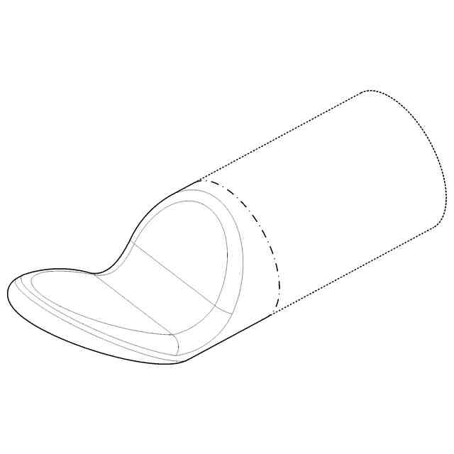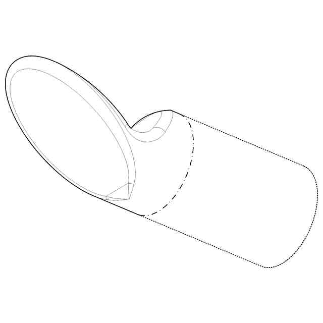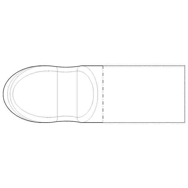 実線で表わした部分が意匠登録を受けようとする部分である。背面図は正面図と対称に表れるため省略する。一点鎖線は、部分意匠として意匠登録を受けようとする部分とその他の部分との境界のみを示す線である。各図の表面に表された細線は、アール形状を特定するためのものである。