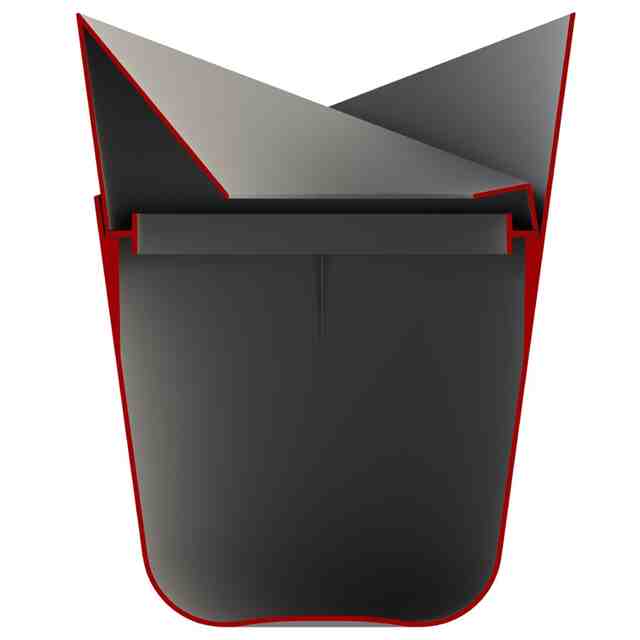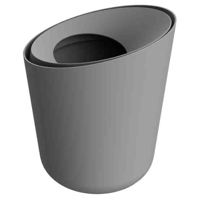 本物品は互いに着脱可能な「本体」と「袋止め」と「袋隠し」とからなるごみ箱である。「本体」はゴミを収容する容器、「袋止め」はゴミ袋の縁などが掛けられることでゴミ袋を保持する部材、「袋隠し」は袋止めで保持したごみ袋の縁などを覆って隠す部材である。使用者は、例えば「正面図」「袋隠しを90度回転した状態の正面図」「袋隠しを180度回転した状態の正面図」のように、設置場所や気分などに応じて袋隠しの配置を自由に変えて使用できる。