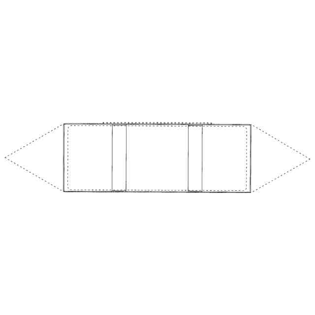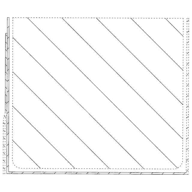 実線であらわした部分が、意匠登録を受けようとする部分である。一点鎖線は意匠登録を受けようとする部分とその他の部分の境界のみを示す線である。端面図を含めて意匠登録を受けようとする部分を特定している。本物品の包装用フィルムは、透明である。