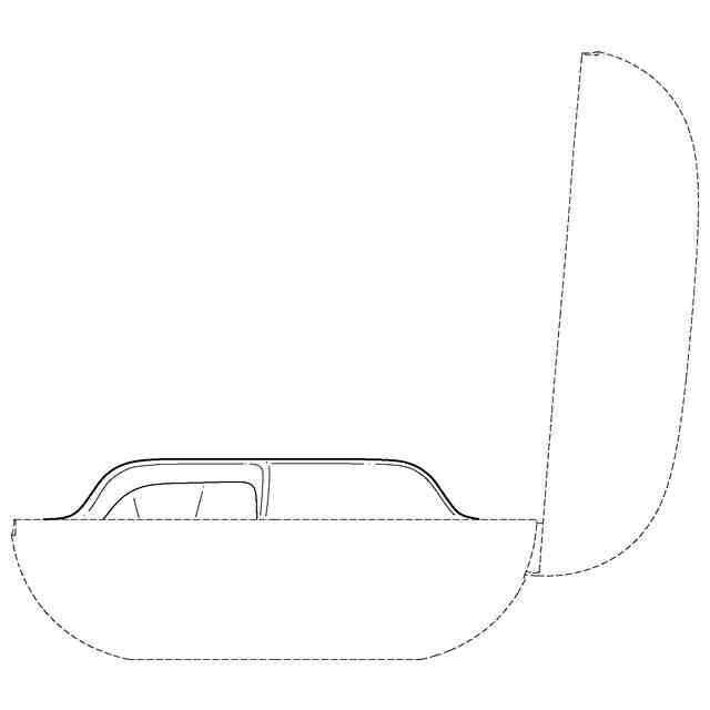 実線で表された部分が、意匠登録を受けようとする部分である。図面に表されている破切れた細線は、模様を表す線ではなく、いずれも立体表面の形状を表す線である。