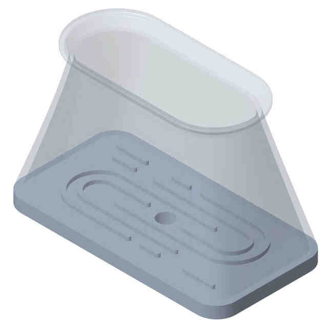 本意匠は図示の通りである。点線で表した部分を除く部分、即ち、実線で表した部分が、部分意匠として意匠登録を受けようとする部分である。透明部を示した参考図に示されるように、底部を除く部分が透明である。