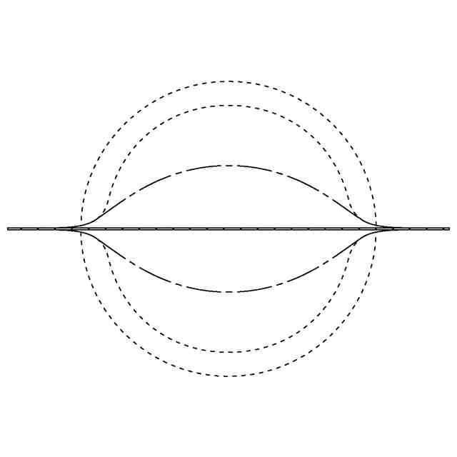 実線で表した部分が、意匠登録を受けようとする部分である。破線で表した部分は、意匠登録を受けようとする部分ではない。一点鎖線は意匠登録を受けようとする部分とその他の部分との境界のみを示す線である。