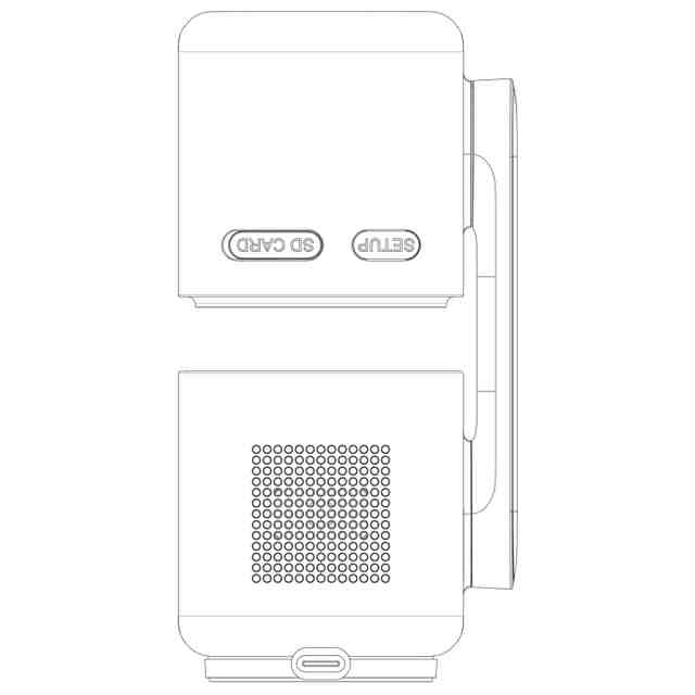 本物品は、本体と、取付台とから構成されている監視カメラである。本体のレンズを下向きに90度回転させることで収納可能になる。