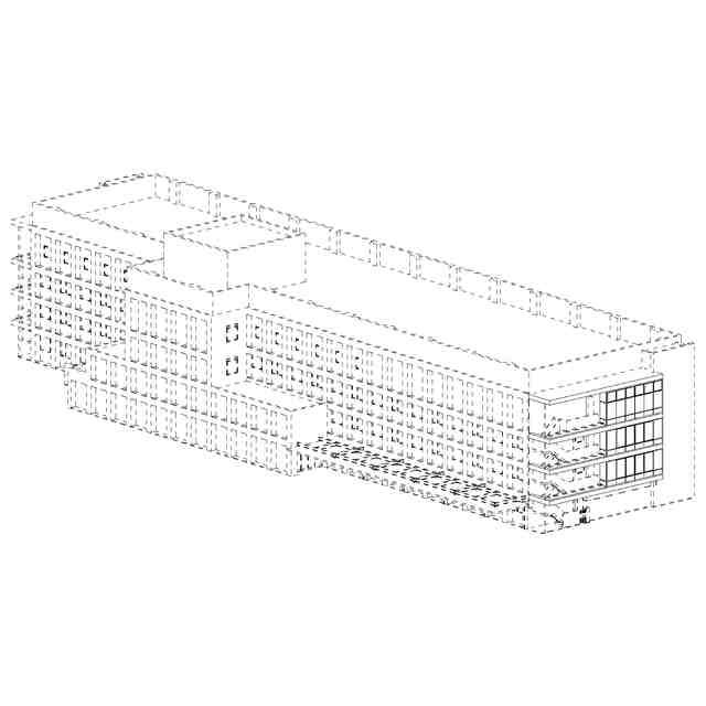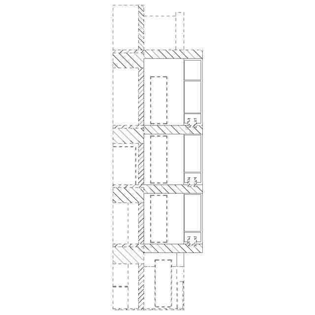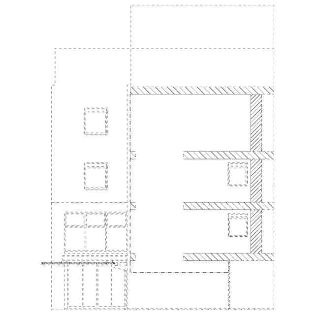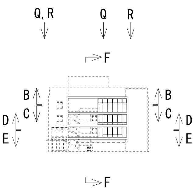 実線で表した部分が、意匠登録を受けようとする部分である。一点鎖線は、意匠登録を受けようとする部分とその他の部分との境界のみを示す線である。「透明部分を示す参考図」において網点部は透明材質を示す。土地の定着物につき「底面図」を省略する。