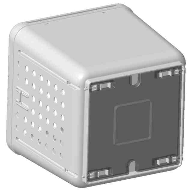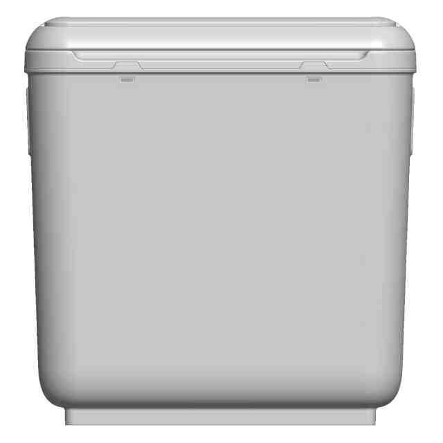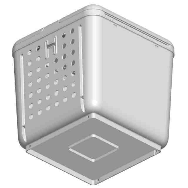 左側面図は右側面図と同一に表れ、背面図は正面図と同一に表れるので、左側面図及び背面図を省略した。 上面開口部に取り付けられている扉は暗調子の透光性を有する。 斜視図、正面図、右側面図、平面図及び底面図の表面部全面に表された濃淡は、いずれも立体表面の形状を特定するためのものである。