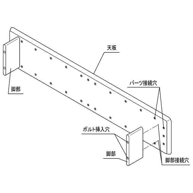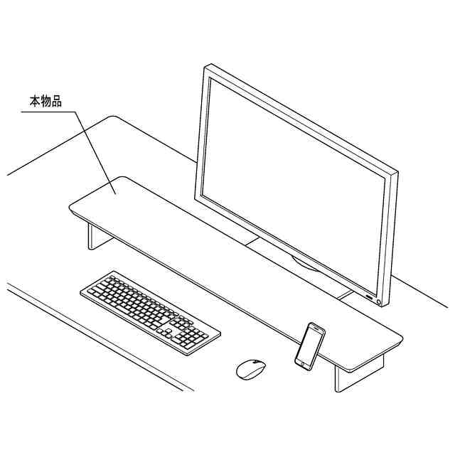 本物品は、机上に設置してパーソナルコンピュータ用モニター等を載置するためのモニター台である。本物品の天板裏面にはパーツ接続穴が多数有しており、棚やフック等の付属品を接続することができる。