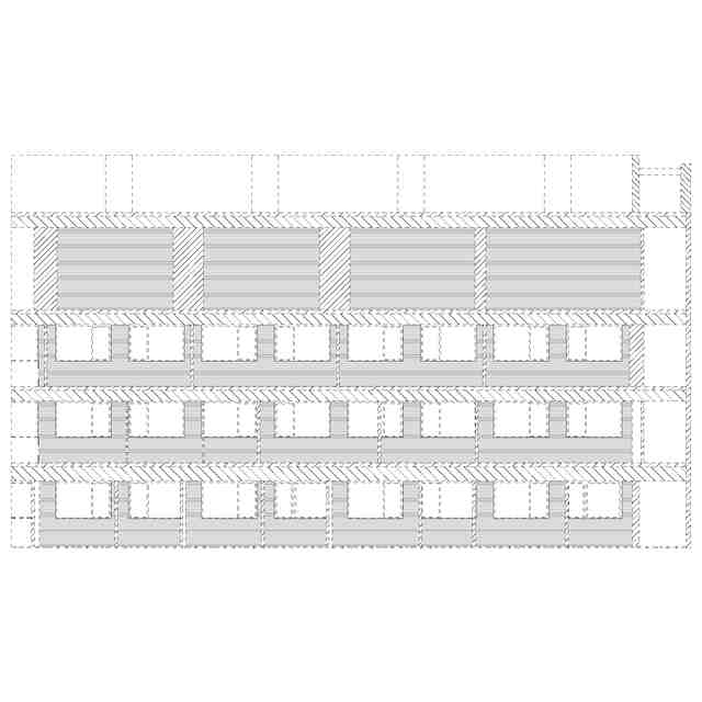 意匠登録を受けようとする部分は、構造柱、構造梁及び外壁の一部に係る。実線で表した部分が、意匠登録を受けようとする部分である。一点鎖線は、意匠登録を受けようとする部分とその他の部分との境界のみを示す線である。「透明部分を示す参考図」において網点部は透明材質を示す。「請求部分を示す参考図1」及び「請求部分を示す参考図2」において、網点部は意匠登録を受けようとする部分を示す。土地の定着物につき「底面図」を省略する。「背面図」は、意匠登録を受けようとする部分が表われないため省略する。