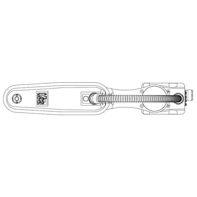 本件意匠のアーム先端の回転軸は、上下方向に伸縮させることができる。当該回転軸を「斜視図」の状態から下方向に伸長した状態を「変化した状態を示す斜視図」に表わす。
