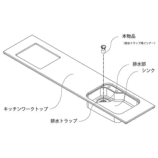 本物品は「使用状態を示す参考斜視図」に表すように、例えばシステムキッチンのシンクにおいて、排水部に封水を形成するために排水トラップと共に用いられる「排水トラップ用インナー」である。
