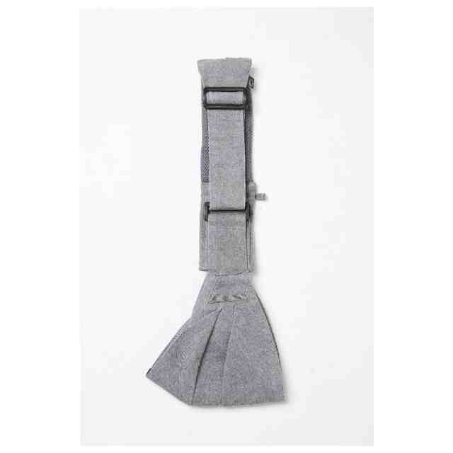 本意匠に係る物品は、幼児を抱くための抱っこ紐である。本意匠に係る物品は、抱っこの時に腕にかかる重量を分散することで、楽に抱っこができるようにサポートするための製品であり、装着時、前のバックルだけでなく、後ろの調節リングでも長さ調節ができるようになっている。また、バックルより内側にはポケットが設けられている。本意匠に係る物品において、幼児の臀部をサポートするためのヒップパッドの外側には2つフラップが設けられており(底面図参照)、使用時には、掛ける肩(左右)に応じてどれかのフラップを折り返すことで、幼児の臀部及び腰を広い面積でサポートすることができ(使用状態を示す参考図参照)、より安定して幼児を抱くことができ、幼児の体の負担を軽減することができるとともに、デザイン性も高いという点で優れている。