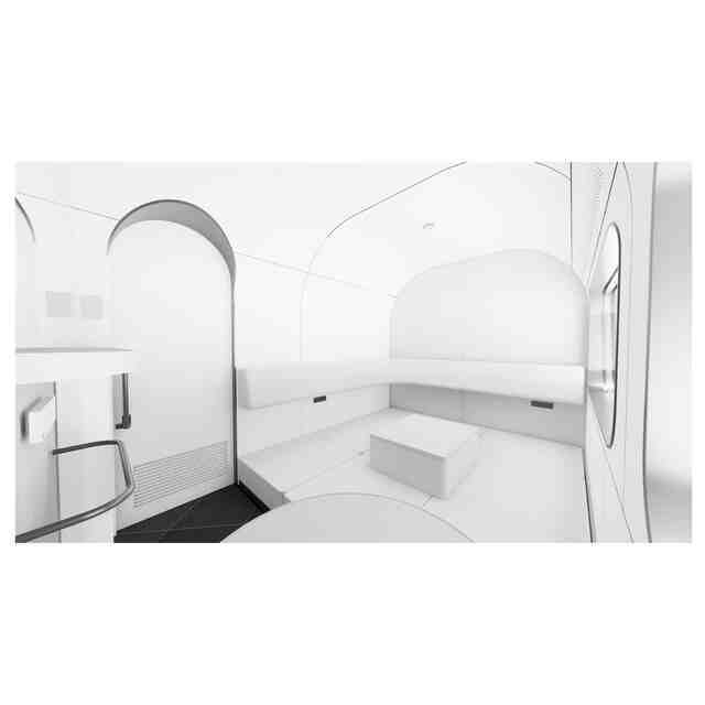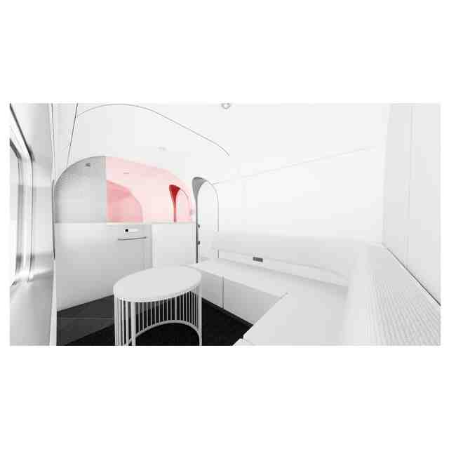 透過の赤色を施した部分以外の部分が、部分意匠として意匠登録を受けようとする部分である。内装内の座席はフラットにすることもできる。座席状態の内装を透視図1から透視図4までに表わす。前記フラットにした状態の内装を透視図5から透視図8までに表わす。各図の表面部全面に表された濃淡は、いずれも立体表面の形状を特定するためのものである。「天井を省略して表わした参考平面図1」及び「天井を省略して表わした参考平面図2」に示す各矢印と各数字は、各矢印が各透視図の視点の位置と向きを表わし、各数字が各透視図の番号にそれぞれ対応している。