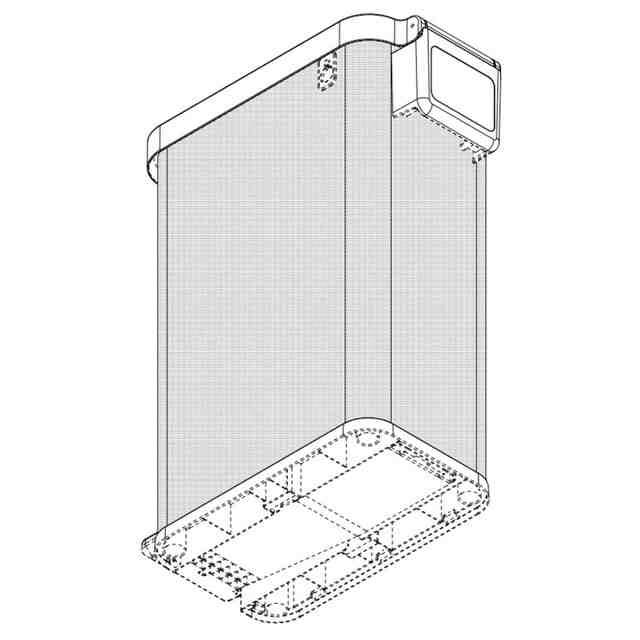 実線で表された部分が部分意匠として意匠登録を受けようとする部分である。参考図1及び2におけるドット模様を付した部分は、その他の部分と異なる素材、材質及び/又は色彩の領域を示すものであって、特定の素材、材質又は色彩を表すものではない。