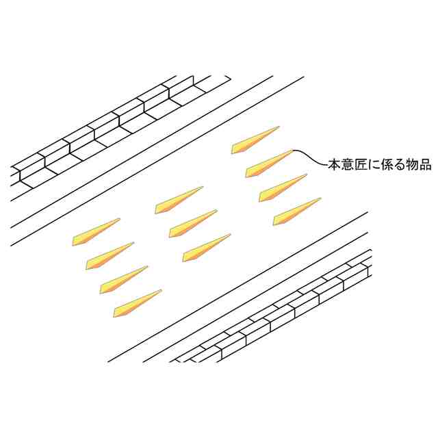 本物品は、「使用状態を示す参考図」に示すように、道路等の舗装面に貼着して使用される標示シートである。