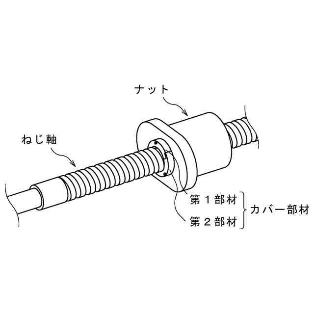 本物品は、ボールねじにおけるナット等に配置されるシール部材である。本物品は、カバー部材を示す参考背面図に示されるように、筒状の枠部と、枠部の一端側に配置される環板状の支持部とを有するカバー部材を備えている。また、A-A線拡大断面図に示されるように、カバー部材における枠部内には、環状のシール材が配置されている。使用状態を示す参考斜視図を参照すると、シール材は、その内周面がねじ軸と接するように配置され、ナット側に異物が入り込むことを防止する。シール材の内周面は、多数の繊維がねじ軸と接するように配置される繊維層によって形成されていてもよい。カバー部材は、第1部材と第2部材とを含んで構成されている。第1部材と第2部材とは、互いの境界部分を着脱させることで、ねじ軸の任意の部分から取り付け可能である。本物品は、軸方向の外側に他のシール部材や他の支持部材等を重ねて使用することもできる。