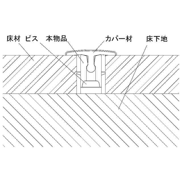 本物品は建物の床に用いる見切材に関し、合成樹脂の射出成形からなり、長さは310mmである。本物品を床材と床材の隙間に配置した後、端部をビスで固定し、カバー材を本物品と嵌合させて仕上げる。本物品は、床の隙間の長さに応じて複数個連続配置したり、切断したりして用いる。