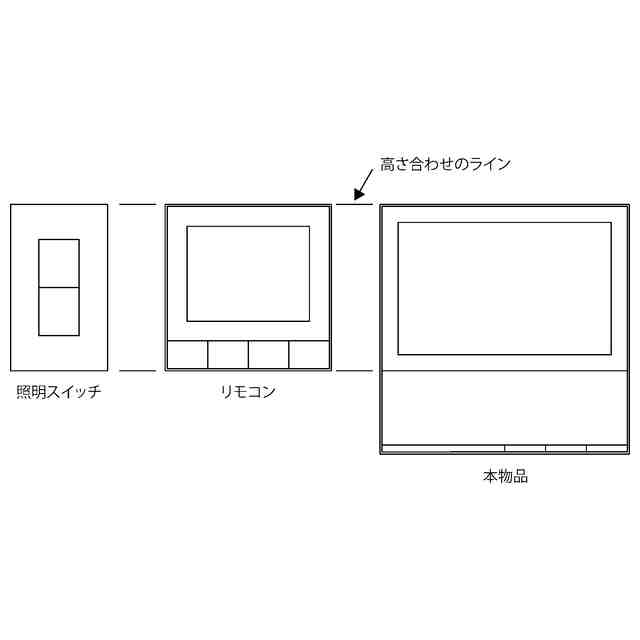本物品は、他の照明用スイッチやリモコンなどの壁掛け機器と高さを揃えることでスッキリとした見た目を実現できるインターホンである。「壁に設置した状態を示す参考図」に示す通り、スイッチやリモコンなどの高さに合わせることでノイズレスな空間を設計することができるものである。