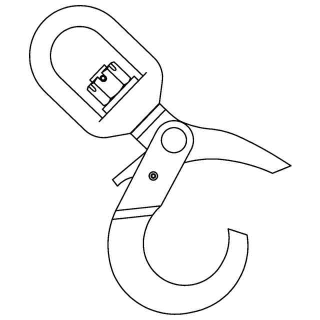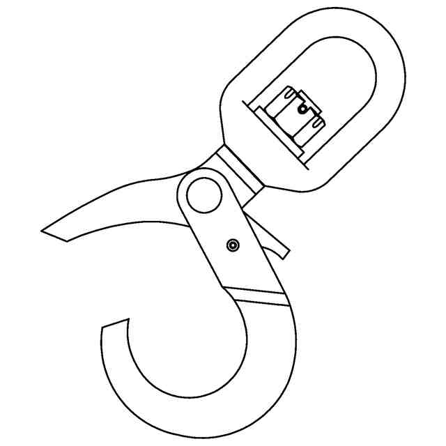 本物品は、フック本体の鉤部を開閉するラッチに、トリガーを操作(押操作)して当該ラッチを開き(開口状態)、吊り荷の荷重で当該ラッチを閉じるラッチロック機構が設けられると共に、フック本体の上部に回転自在なスイベルが設けられた懸吊用フックである。本物品は、前記の鉤部の断面形状が細身の円形状であるため、主として仮設足場用の資材(足場材)の懸吊に好適に用いられる。