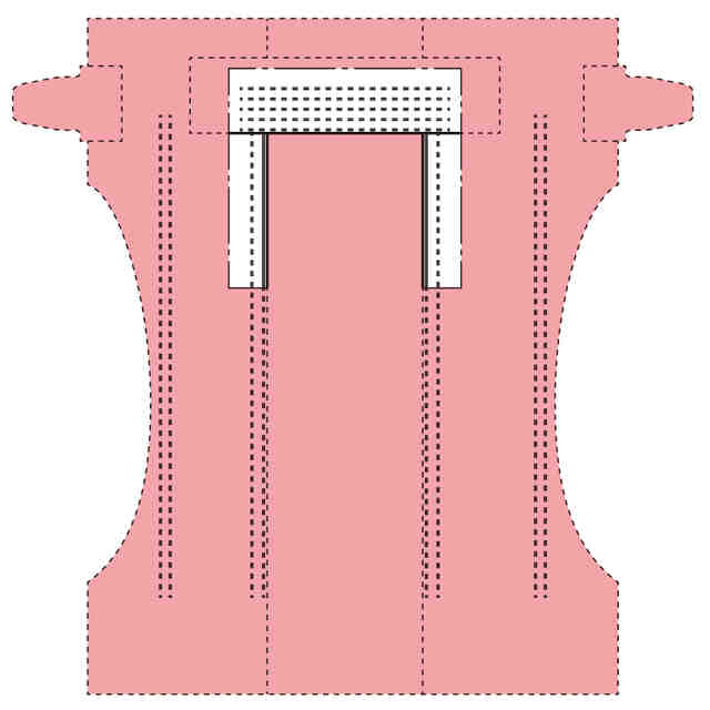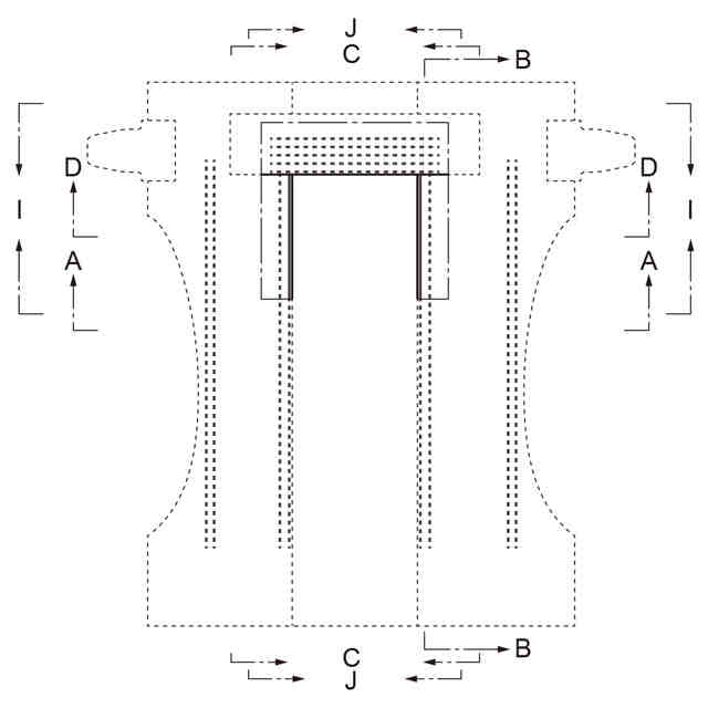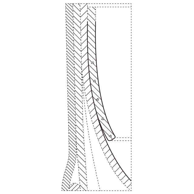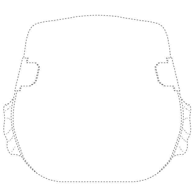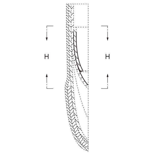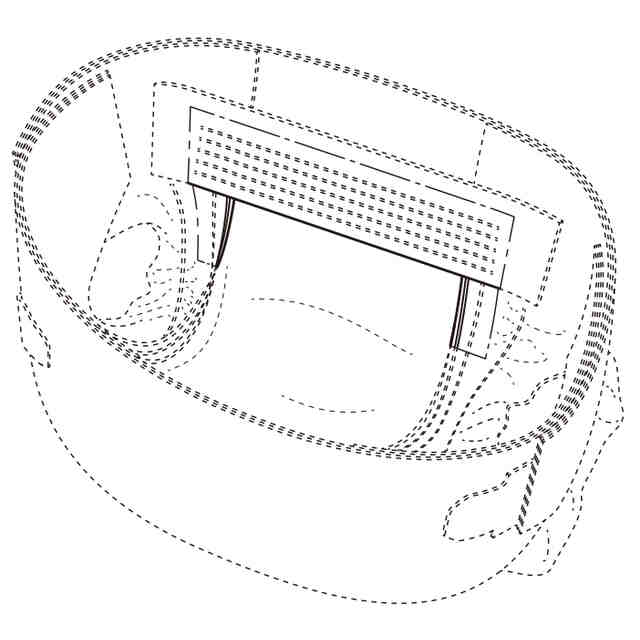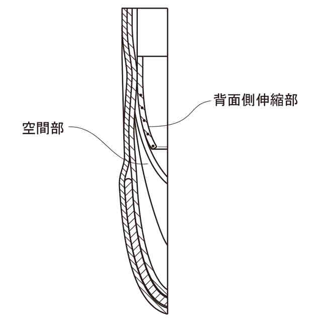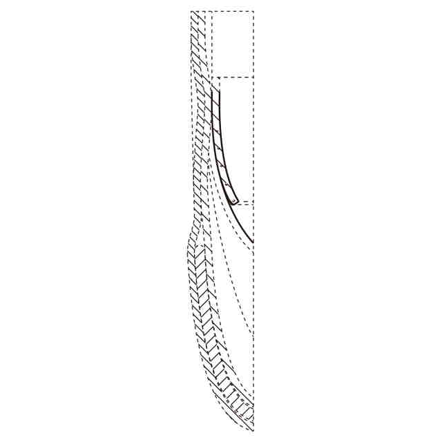 実線で表した部分が、部分意匠として意匠登録を受けようとする部分である。破線で表した部分は、部分意匠として意匠登録を受けようとする部分以外の部分を示すものである。一点鎖線は、部分意匠として意匠登録を受けようとする部分とその他の部分との境界のみを示す線である。「意匠登録を受けようとする部分を示す参考正面図」において、赤色で着色を施した部分以外の部分が、部分意匠として意匠登録を受けようとする部分である。本願意匠は「着用状態にあるときの拡大正面図」乃至「H-H部分拡大図」に示す態様も含めて意匠登録を受けようとするものである。なお、本物品は、物品の性質上、物品の表面に細かいシワが表れる場合がある。