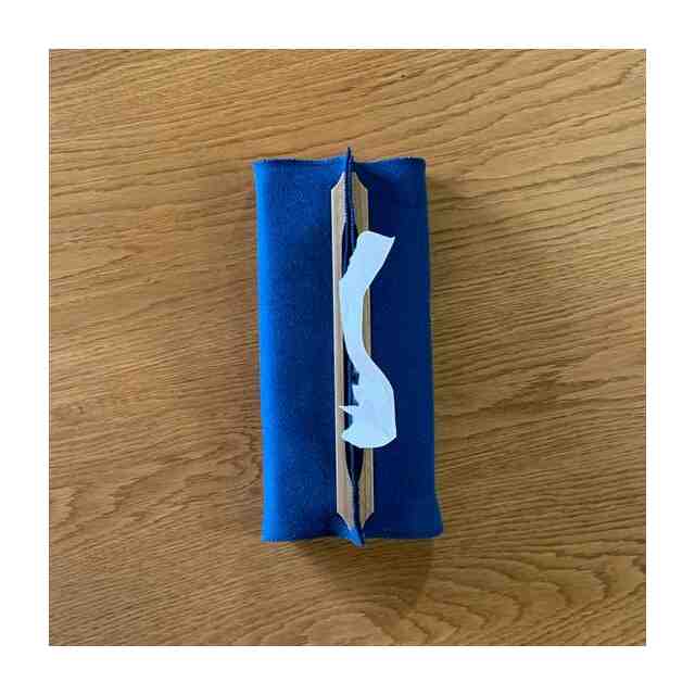 本物品は、2つの対称となる部材で構成され、それぞれの部材の間に布・紙等を部材内部にあるマグネットの吸着力で挟むことにより、箱型・袋型ティッシュ等のカバーを補助する道具である。使用状態を斜視図並びに参考図を示す。