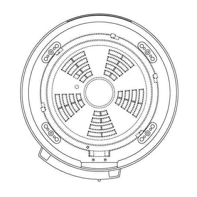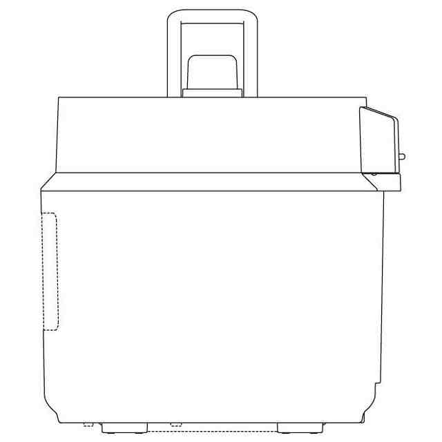 実線で表された部分(すなわち、破線で表された正面図中央の矩形状の操作パネル部、背面図中央下部の矩形状のコネクタ部及び底面の脚部より内側の部分以外の部分)が、意匠登録を受けようとする部分である。