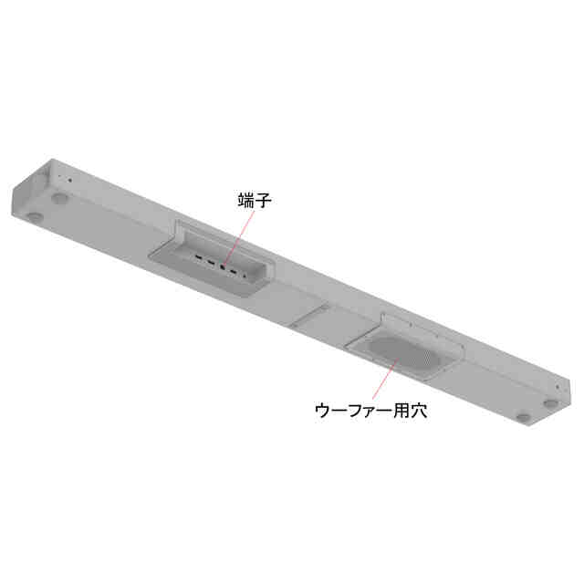 本物品は、正面の全面と上面(平面)両端にスピーカーグリルを備え、底面にウーファー用穴を有するスピーカーである。