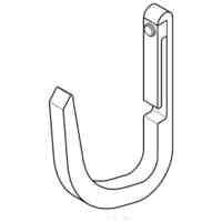本物品は、使用状態を示す参考図1,使用状態を示す参考図2に図示したように、ベルト装着部と、工具等を吊り下げ連結するフック部とからなる腰ベルト用金具である。フック部に設けた孔部は、カラビナ等を吊り下げ連結するためのものである。本物品は、金属製であり、巾約8cm,高さ約12cm,厚さ約1cmである。