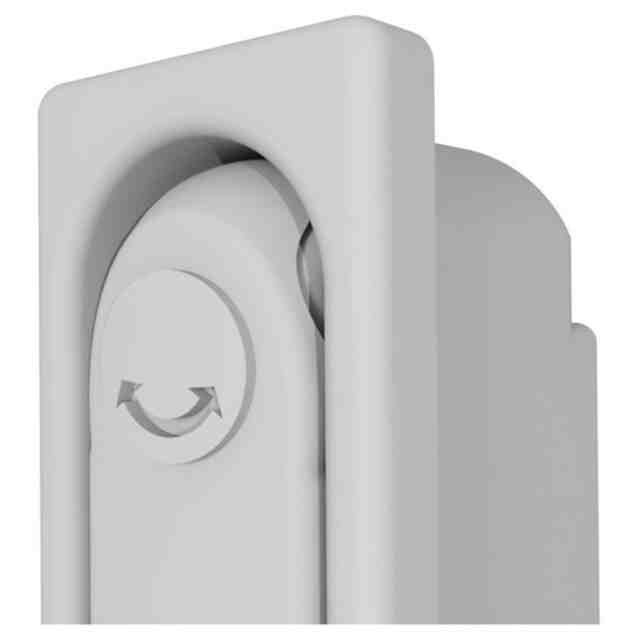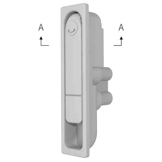 本物品は、操作ハンドルの下部を引き起こし回動させて施錠、開錠する建具用の錠である。
