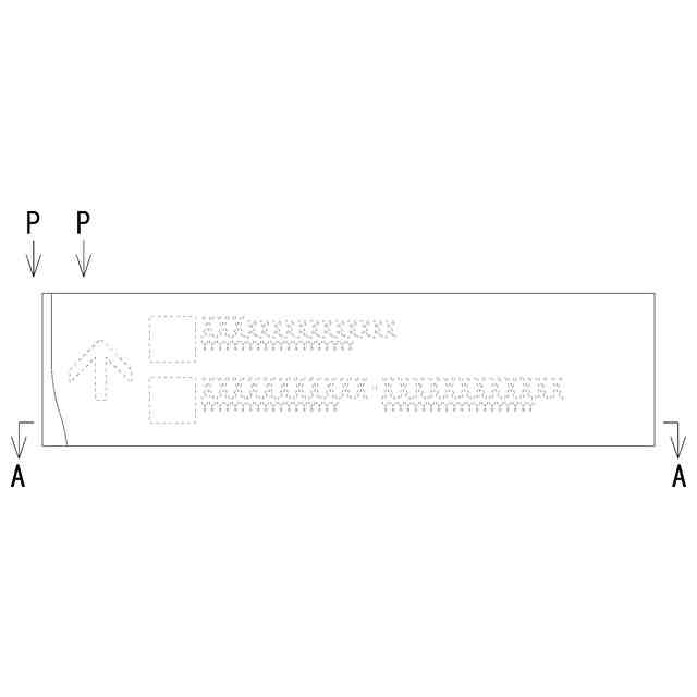 本物品は、壁面、床面、板体、柱等への取付、天井からの吊下等にて設置し、案内・誘導等の目的にて使用する案内標識である。
