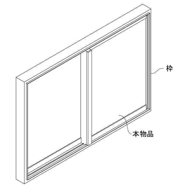 本物品は、使用状態を示す参考図に示すように、枠の内側に納められる建物用窓の障子である。障子の框表面には、障子を左右方向に摺動操作するための手掛け部を有する。
