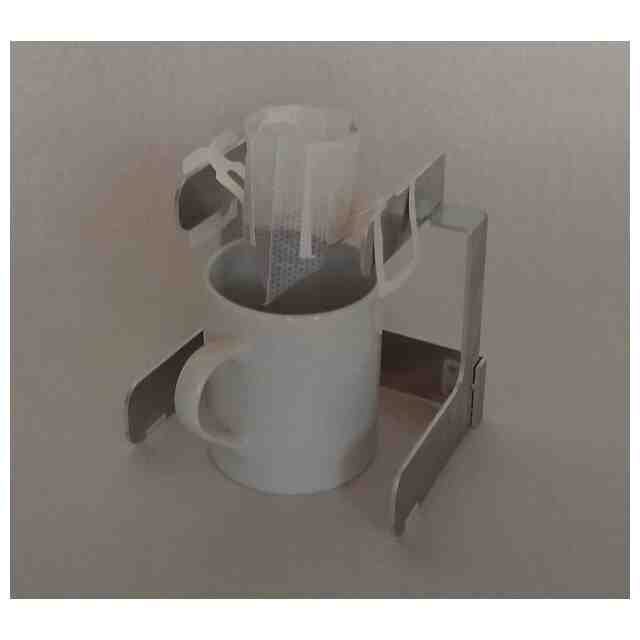 本物品は、折り畳みできるドリップバッグスタンドである。左右のパネル上部に前後に張り出した2本のアームがあり、そこにドリップバッグのフック部を引っ掛けて使用する。こうすることにより、バッグ本体がコーヒーカップの中のお湯に浸かることなくコーヒーを淹れることができる。スタンド全体がカップを包み込む形状となっており、カップの上に乗せる一般的なドリップバッグスタンドとは違い、安定感と高級感を持たせることができる。また、本物品は折り畳み式であるため、使わない時はコンパクトに収納することができる。