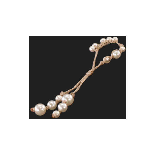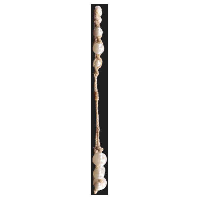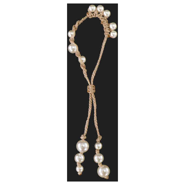 マクラメワックスコードを使用、見本はフェイクパールにて制作。 (※本物品は両耳用であるが、左右に変わりはなくどちらにも着用可能なデザインの為、図面写真は片側のみに省略)
