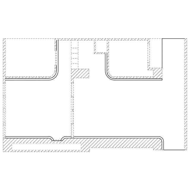 本願意匠は集合住宅の建築物であって、本願意匠のうち意匠登録を受けようとする部分は、集合住宅のエントランス及び風除室である。建築物内の実線で表した部分が、意匠登録を受けようとする部分である。