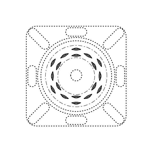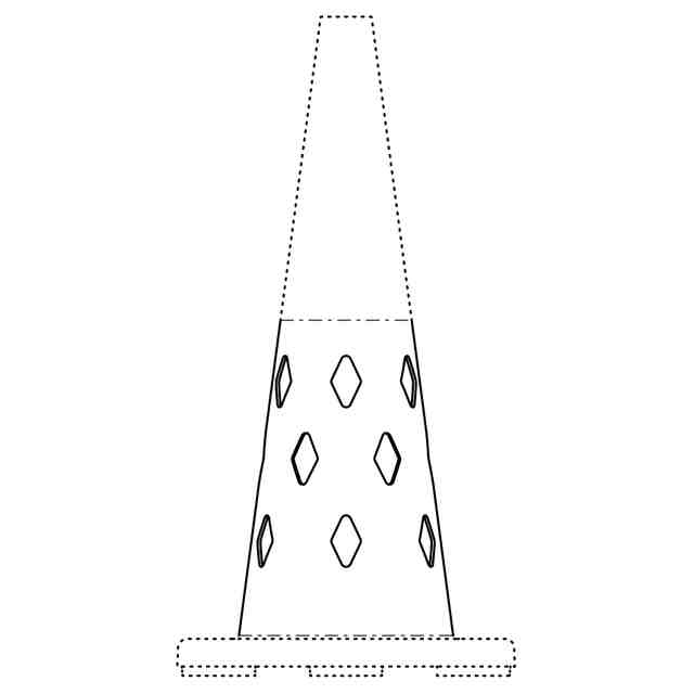 実線で表した部分が、部分意匠として意匠登録を受けようとする部分である。一点鎖線は部分意匠として意匠登録を受けようとする部分とその他の部分の境界を示す線である。左側面図は、右側面図と対称のため省略する。背面図は、正面図と対称のため省略する。