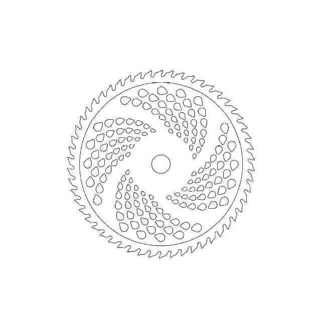 本物品は、刈払機に装着して使用する回転刃であり、台座の孔形状に特徴を有している。また、円板状台座の外周縁には、全周にわたり多数の刃部が設けられている。