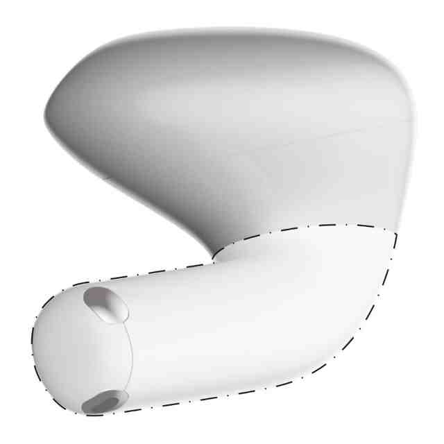 一点鎖線で囲まれた薄灰色で着色した部分以外の部分が、意匠登録を受けようとする部分である。各図の表面部全面に表された濃淡は、いずれも立体表面の形状を特定するためのものである。表面上に表されている陰または照明等の反射を表すための濃淡は、意匠を構成しない。