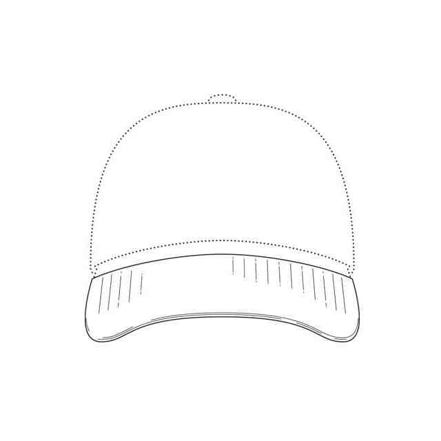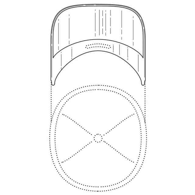 破線で表した帽子は、意匠登録を受けようとする意匠以外の物品を描いたものである。実線で表した部分が、意匠登録を受けようとする部分である。各図の表面部に表された細線は、いずれも立体表面の形状を表す線である。右側面図及び背面図は省略する。
