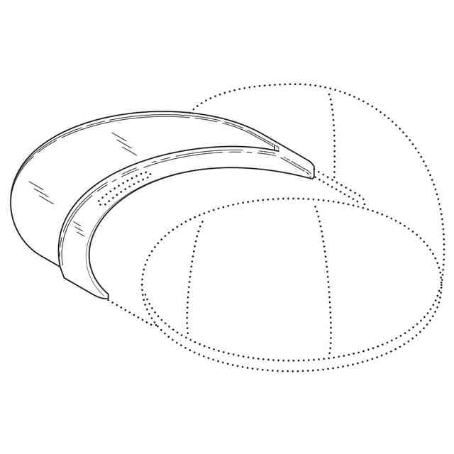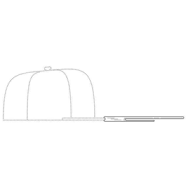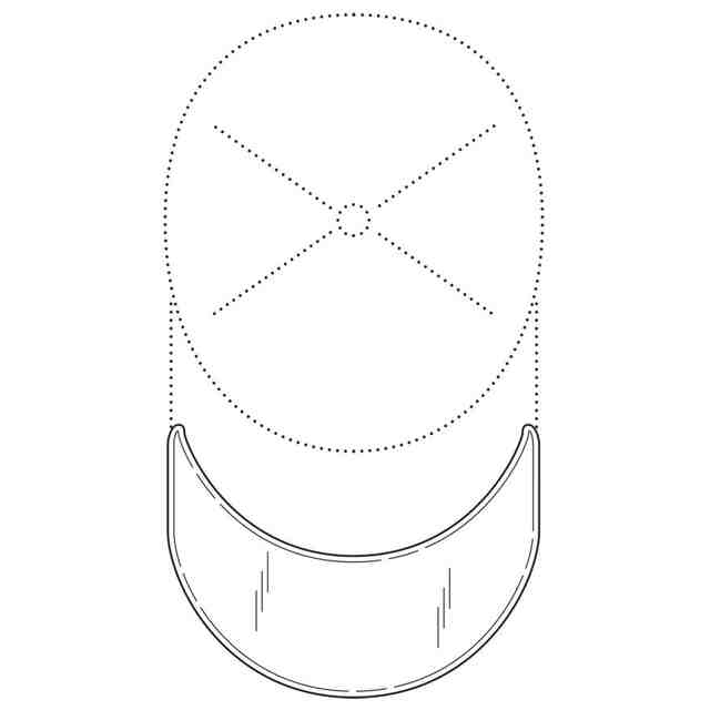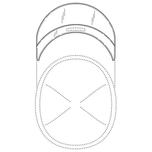 破線で表した帽子は、意匠登録を受けようとする意匠以外の物品を描いたものである。実線で表した部分が、意匠登録を受けようとする部分である。各図の表面部に表された細線は、いずれも立体表面の形状を表す線である。右側面図及び背面図は、省略する。