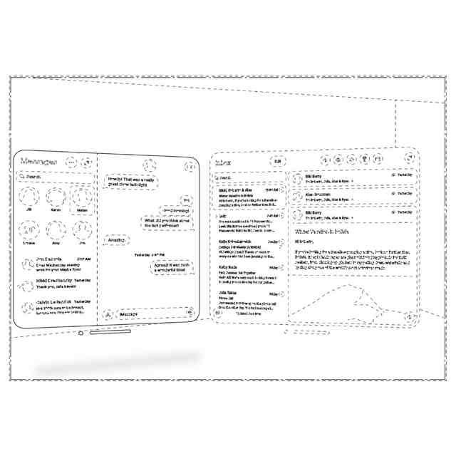 破線で表された部分以外の部分が、意匠登録を受けようとする部分である。一点鎖線は、意匠登録を受けようとする部分とその他の部分との境界のみを示す線である。参考画像図において青色で着色された部分は、例えば3次元仮想空間や3次元現実空間を示す画像等がユーザーの視野内の背景コンテンツとして表示される部分である。参考画像図において赤色で着色された部分は、例えば写真やメディア情報等のコンテンツが表示される部分である。参考画像図において青色で着色された部分以外の部分は、3次元に見える部分である。