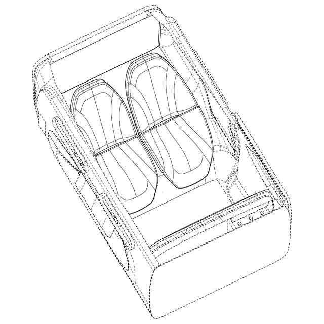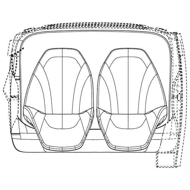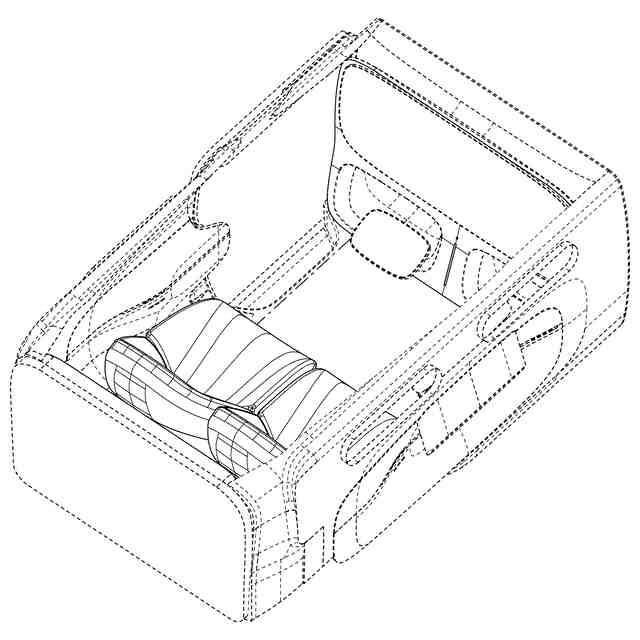 本物品は、自動車の後部座席を多目的のリクライニング空間として利用することを可能とする内装である。例えば、前方壁にディスプレイパネルを設置して、動画やゲーム等を楽しむことができる。また、使用状態を示す参考図1及び2に示されるように、壁面にテーブルを設置したり、飲食物ホルダーを設け、飲食を楽しむこともできる。