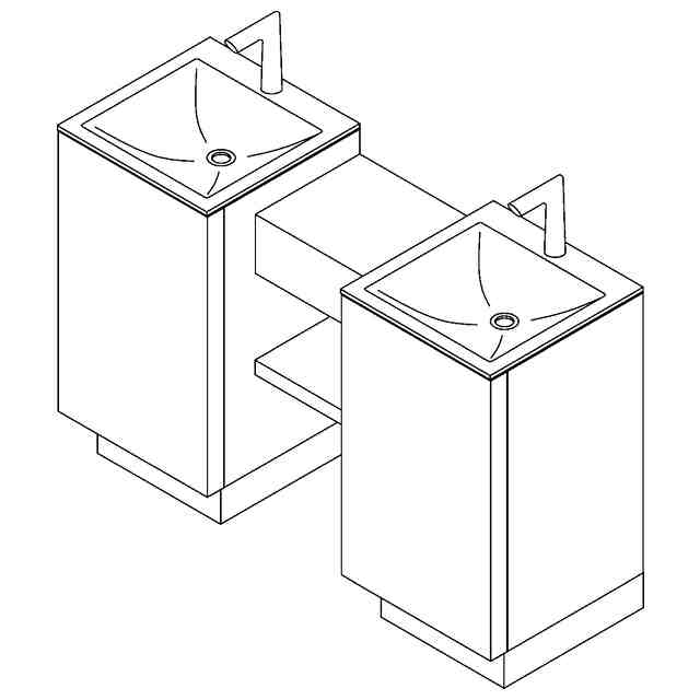 本物品は、使用状態を示す参考図に表すように、略直方体状である独立型の洗面設備と、その間を接続するカウンターと、が一体となった洗面台である。