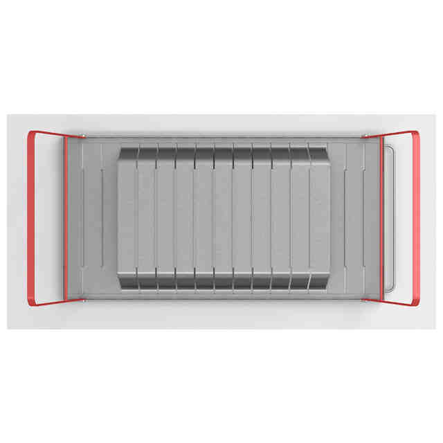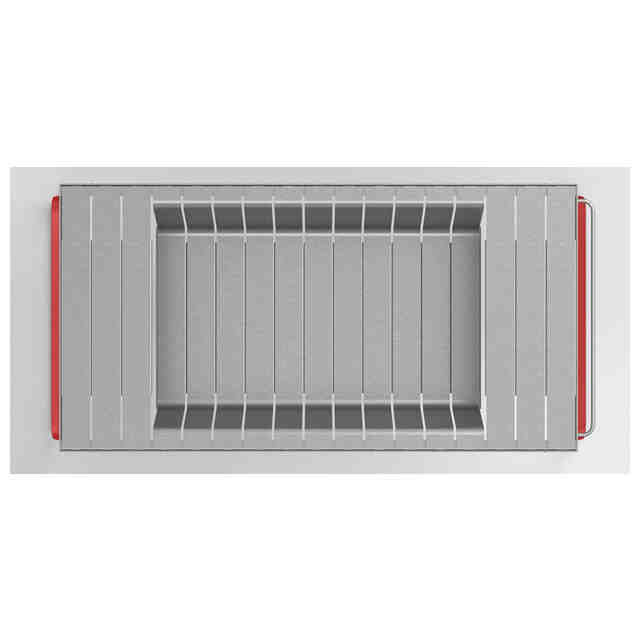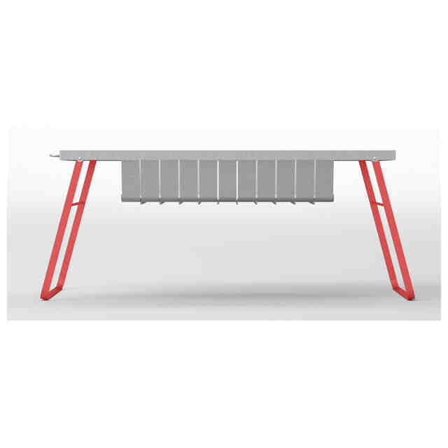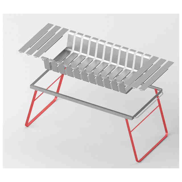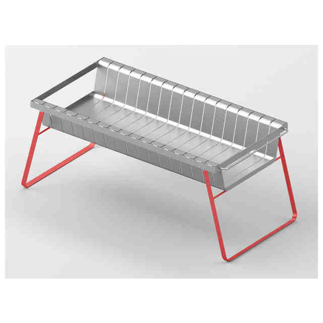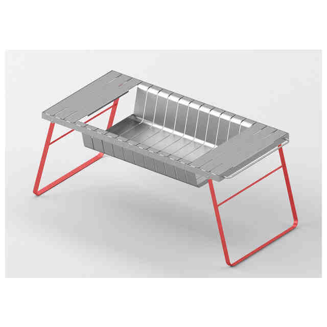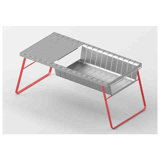 この意匠は、フレームに側・底板、上板を装着して構成されている。各板はフレームに着脱自在であり、装着位置は変更可能である。フレームは脚を折りたたむことができる。赤色に着色した部分以外が、意匠登録を受けようとする部分である。