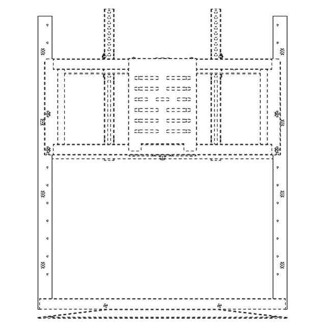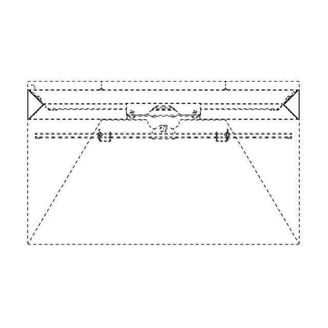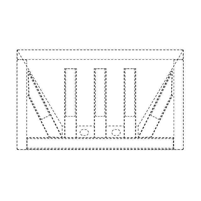実線で表した部分が、意匠登録を受けようとする部分である。意匠登録を受けようとする部分は、左右の2本の支柱の形状である。支柱表面に設けられた形状(正面の4つの円形のクッション材、背面の8つのケーブル用クリップ、背面の複数の小円形ネジ穴)は破線であり、意匠登録を受けようとする部分ではない。右側面図は、左側面図と対称のため省略する。
