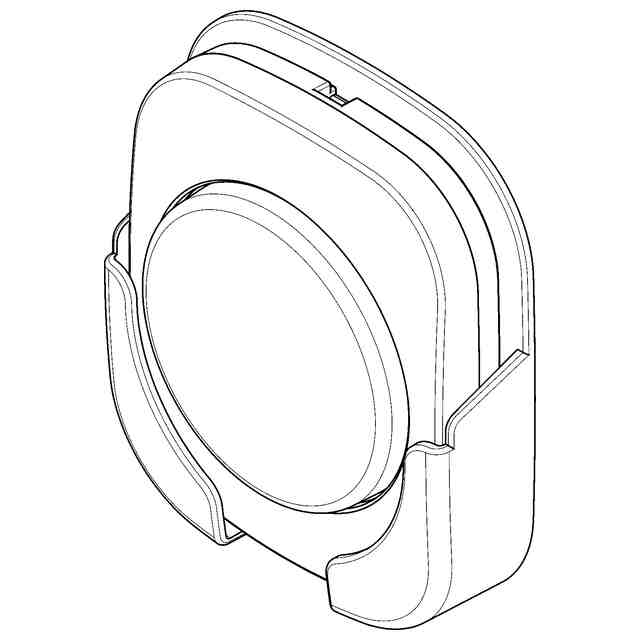本物品は、病院のベッド等に置いて設置され、患者が看護師を呼び出すための無線呼出用ボタンである。本物品は、四角形状の外枠と、中央の呼出ボタンとで構成されている。当該呼出ボタンは、外枠から突出して形成されている。ホルダに取り付けた状態を示す参考斜視図に示すように、本物品は、例えば、ベッド等に設けられたホルダに取り付けられて設置される。