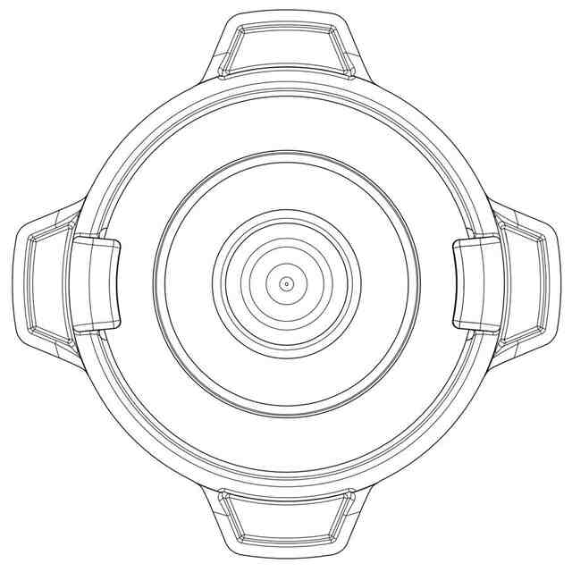 実線で表した部分が、意匠登録を受けようとする部分である。各図において、面形状の変化部に表された線(ワイヤーフレーム)は模様を表す線ではなく、いずれも立体表面の形状を表す線である。背面図は正面図と、右側面図は左側面図と同一に表れる。