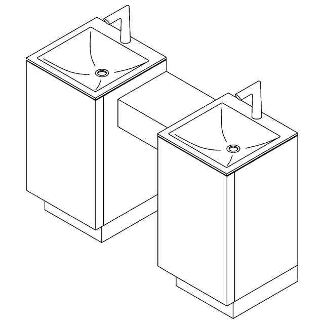 本物品は、使用状態を示す参考図に表すように、略直方体状である独立型の洗面設備と、その間を接続するカウンターと、が一体となった洗面台である。