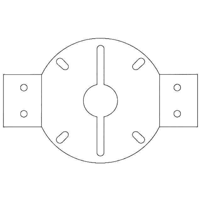 本物品は照明器具をオートリフターに接続するための取付金具である。オートリフターの機種は様々あるが、多くのオートリフターの取付穴位置は取付位置が直径73mmの円周上に等間隔に4か所,または取付位置が直径84mmの円周上に等間隔に4か所であり、本物品は両方に対応できる細長い穴を有するため,大多数のオートリフターに対応できる。また、スリット状の穴を有しているため、2箇所でネジ止めするタイプにも対応でき,取付位置のピッチも問わない。オートリフターの中には昇降部に設けられた結線ボックスに照明器具上にある金属板をスライドさせて取り付けるタイプがあるが、このスリット状の穴に金属板を固定することができる。