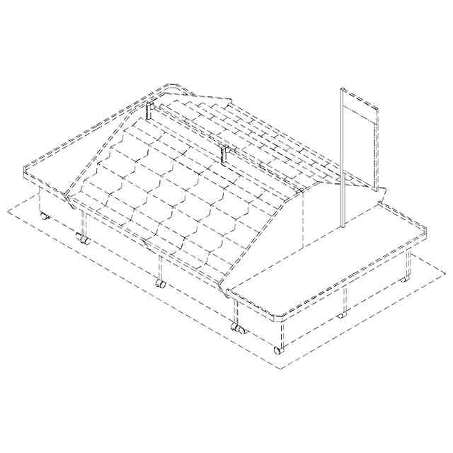背面図は正面図と対称にあらわれるため省略する。実線で示した部分が、部分意匠として意匠登録を受けようとする部分である。一点鎖線は部分意匠として意匠登録を受けようとする部分とその他の部分との境界のみを示す線である。